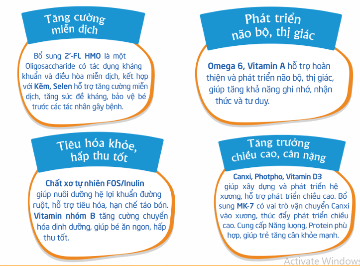• Sữa bột (30-40%): Nguyên liệu sữa bột nhập khẩu từ New Zealand, hệ dưỡng chất Vitamin & Khoáng chất theo khuyến cáo của Sữa công thức.