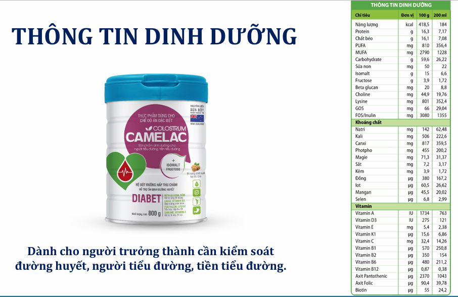 SỮA CAMELAC COLOSTRUM DIABET – DINH DƯỠNG ĐẶC CHẾ CHO NGƯỜI TIỂU ĐƯỜNG -TIỀN TIỂU ĐƯỜNG